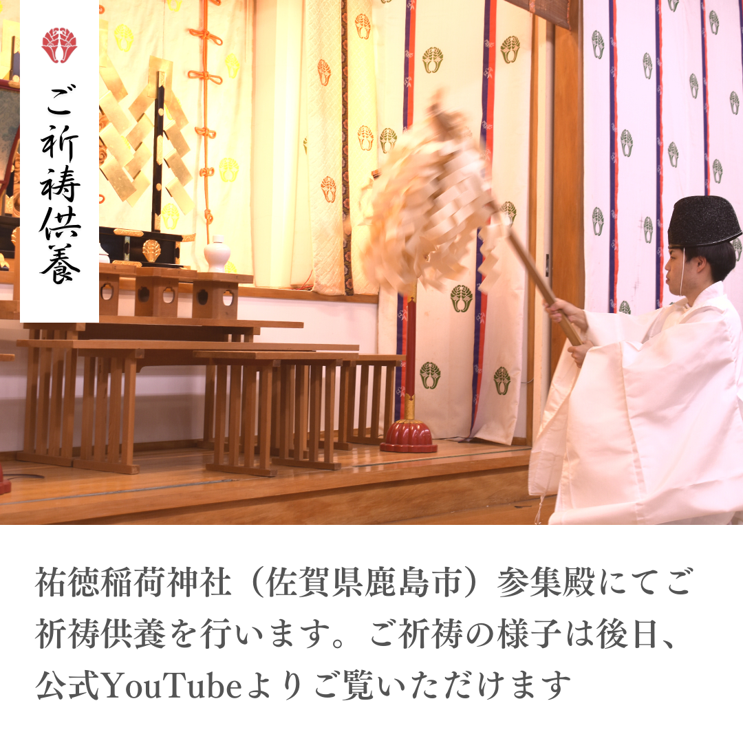 - 祐徳稲荷神社にてお祓いをしますお祓いはお品を完全に浄化し、汚れのない清浄な品にする意味があります